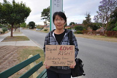 這次的遊行其實我們是臨時才知道的,原先計畫去參加的是十一月二十四日的那一場,今天晚上這一場只算是伯斯同志大遊行的前哨站,在西澳多元文化匯聚的核心區域舉辦,除了是同志友善團體的大行動外,也是一個觀光性質濃厚的活動。現場可以看到非常多對陌生文化感到興趣的觀光客,特別是平常保守慣了的亞洲人,更是一群群的相邀去看遊行,就像去參觀一年一度嘉年華會吧。這場夜間的遊行少了很多嚴肅,多了的則是性向與情感的自我解放。